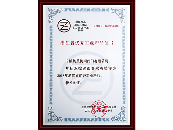 浙江优秀工业产品证书