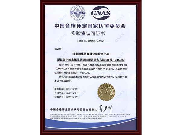 实验室认可证书