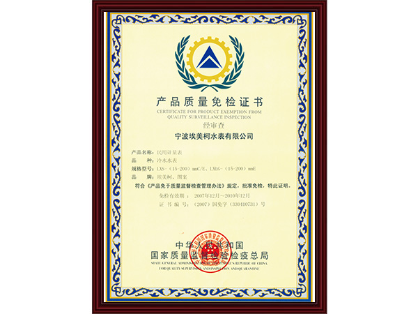 水表国家免检证书