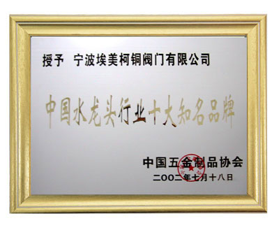 水龙头被评为“中国水龙头行业十大知名品牌”