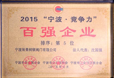 今年,埃美柯公司获得2015“宁波·竞争力百强榜第5名”。我公司已连续三年获此殊荣。这个奖项是对企业创新能力、成长性、人均劳动生产率等18项指标98个权数进行综合评分排名的,这也与我们近几年通过参加市长质量奖评审、不断推进卓越绩效管理模式、开展机器换人等工作密不可分。