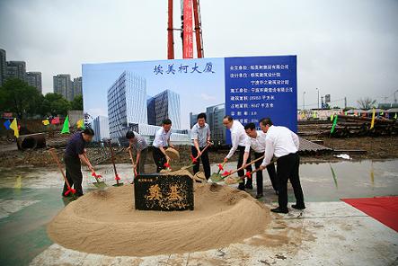 开工奠基典礼由江北区文教街道书记潘卫锋主持,埃美柯集团董事长沈国强代表项目建设方致词并介绍项目基本情况。沈董事长首先对出席本次开工奠基典礼的各位领导、对关心支持“埃美柯大厦”项目建设的各级部门表示衷心的感谢!他指出江北姚江医院北侧地块是原埃美柯公司的旧址,十年前我们响应政府号召拆迁搬迁,今天我们又重回原址,建造“埃美柯大厦”,这是历史的回归,也是时代的选择。整个“埃美柯大厦”占地面积8047平方米,建筑面积26053平方米,设计为综合商务楼,总投资近2亿元人民币。今天开工奠基典礼的举行,将揭开“埃美柯大厦”项目工程建设的序幕,我们将践行埃美柯公司“让人们生活更美好”的宗旨,为推进宁波市的重大项目建设作出一份贡献。