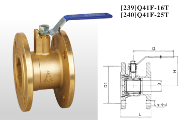 产品名称:239Q41F-16T 240Q41F-25T黄铜法兰球阀