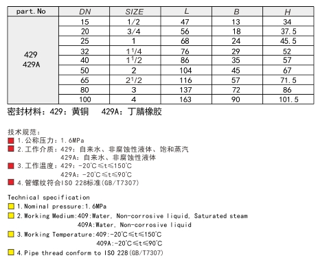 429 429AH14W-16T H14X-16T 黄铜止回阀