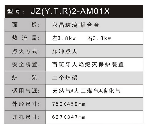 埃美柯燃气炉JZ(Y.T.R)2-AM01X