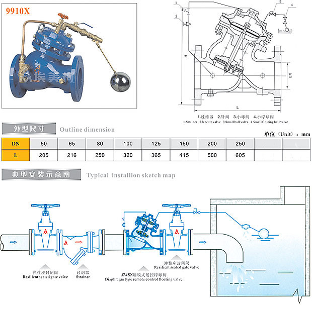 Y42X隔膜式可调减压阀是安装于高层建筑给排水管道上,将进口压力减至某一需要的出口压力的特种阀门。该阀门依靠本身能量使出口压力保持稳定在设定值,即出口压力不因进口压力及流量的变化而变化,并且阀门控制系统的进口处装有一个过滤器,利用流体特性,使比重较大、直径较大的悬浮颗粒不会进入控制系统,确保系统循环畅通无阻,使阀门能安全可靠的运行。减压范围:出口压力 0.05~1.2MPam