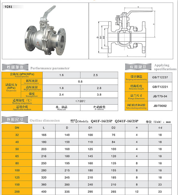 9281 Q41F-16/25P不锈钢法兰球阀
